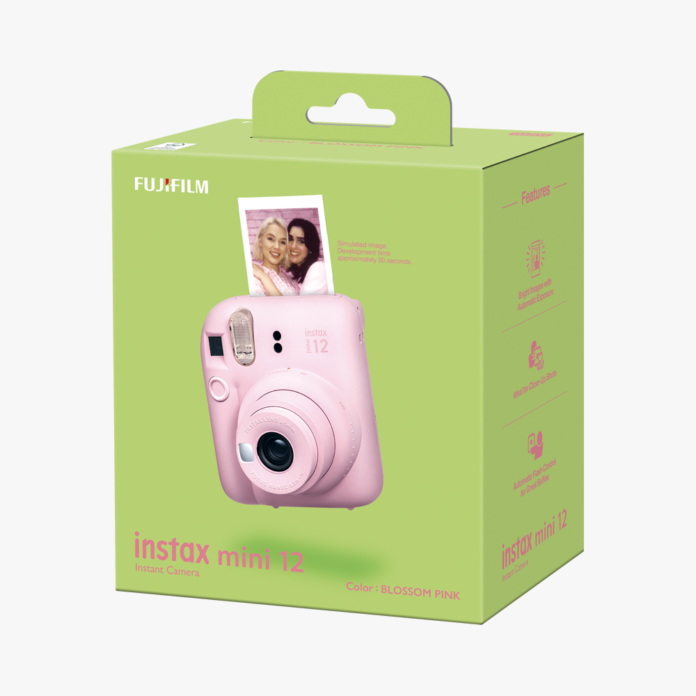 La nueva cámara instantánea INSTAX MINI 12  diseñada para mantenerse al día con la vida, está lista para funcionar con un simple giro de la lente. Gira de nuevo y estás en modo Selfies. Combinado con el espejo delantero perfectamente posicionado, el control automático de flash.