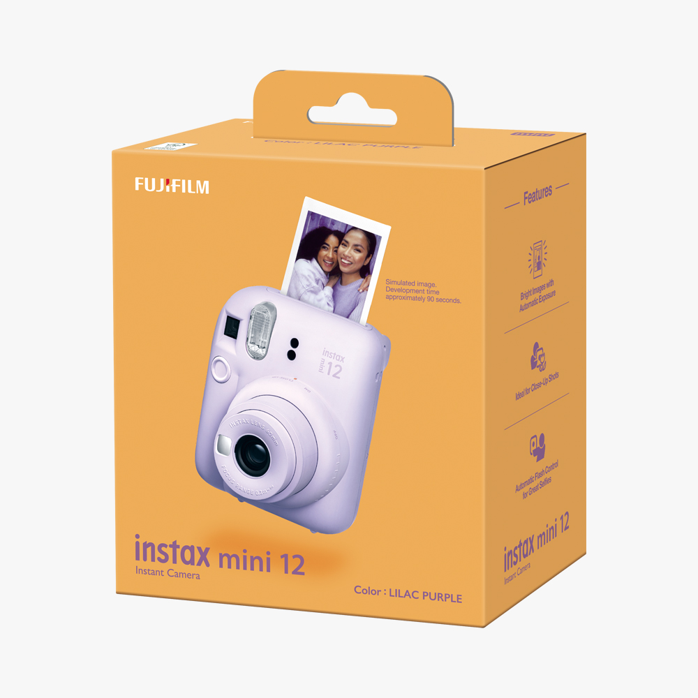 La nueva cámara instantánea INSTAX MINI 12 diseñada para mantenerse al día con la vida, está lista para funcionar con un simple giro de la lente. Gira de nuevo y estás en modo Selfies. Combinado con el espejo delantero perfectamente posicionado, el control automático de flash.