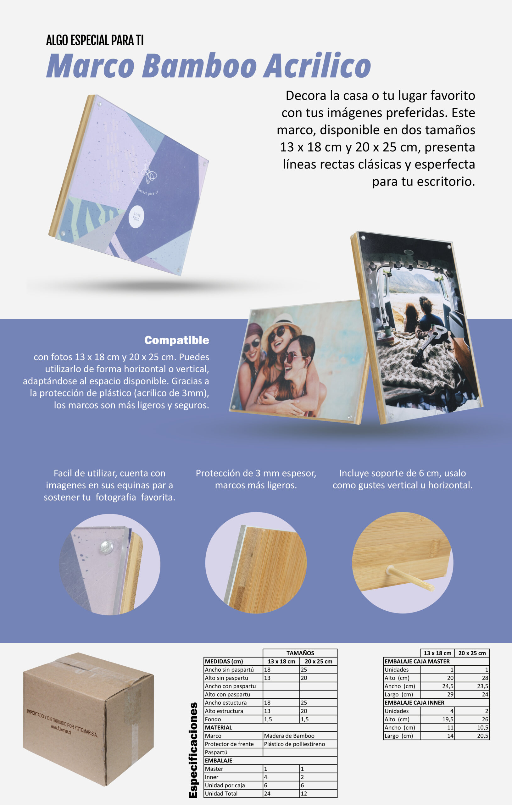 Decora la casa o tu lugar favorito con tus imágenes preferidas. Este marco, disponible en un solo tamaño de 20×25 cm, presenta líneas rectas clásicas y es perfecto para tu escritorio. La protección frontal de plástico es segura y pone en valor la imagen.