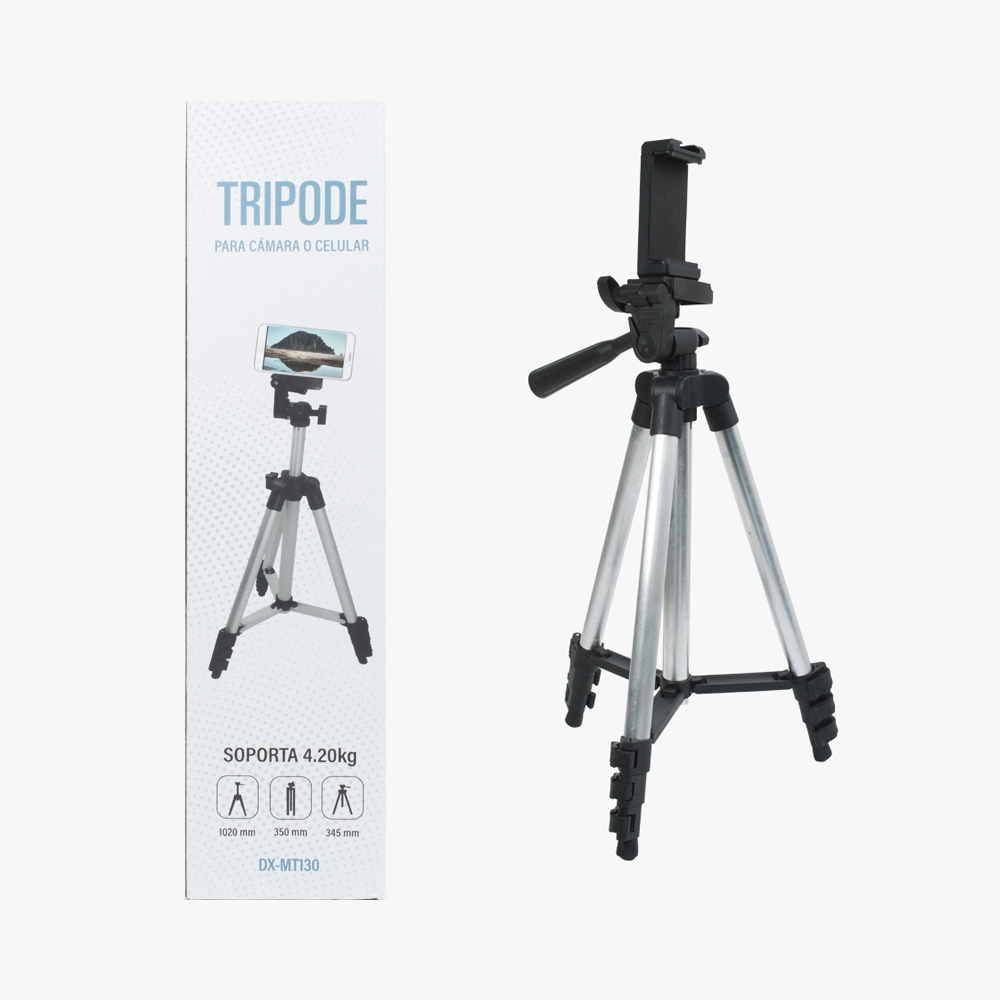 Soporta hasta 4.20 kg, tiene un alto abierto de 1.020 mm, 350 mm cerrado y 345 mm sin el brazo central extendido. La materialidad de cada pata es aluminio e incluye una palanca para el bloqueo, el cabezal tiene 3 ejes, los pies de goma ayudan a que no tenga movimientos involuntarios.